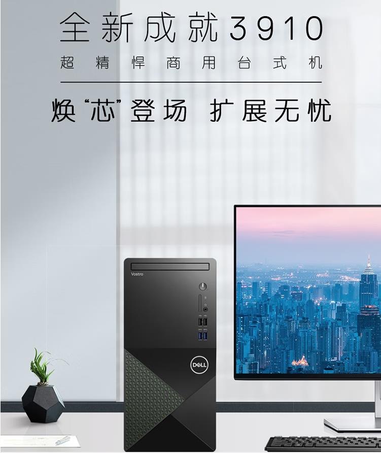 戴爾(DELL) Vostro成就3910-14N9十二代酷睿內(nèi)置WIFI辦公設(shè)計臺式電腦主機i5-12400 8G 256G+1T加21.5英寸顯示器